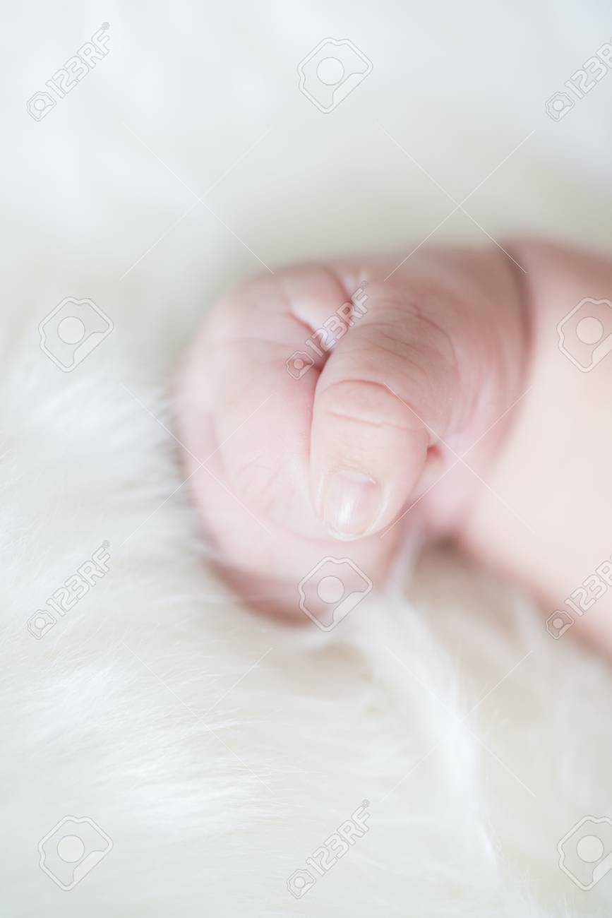 Small Cute White Baby Closed Fist Hand Close Up Stock Photo And